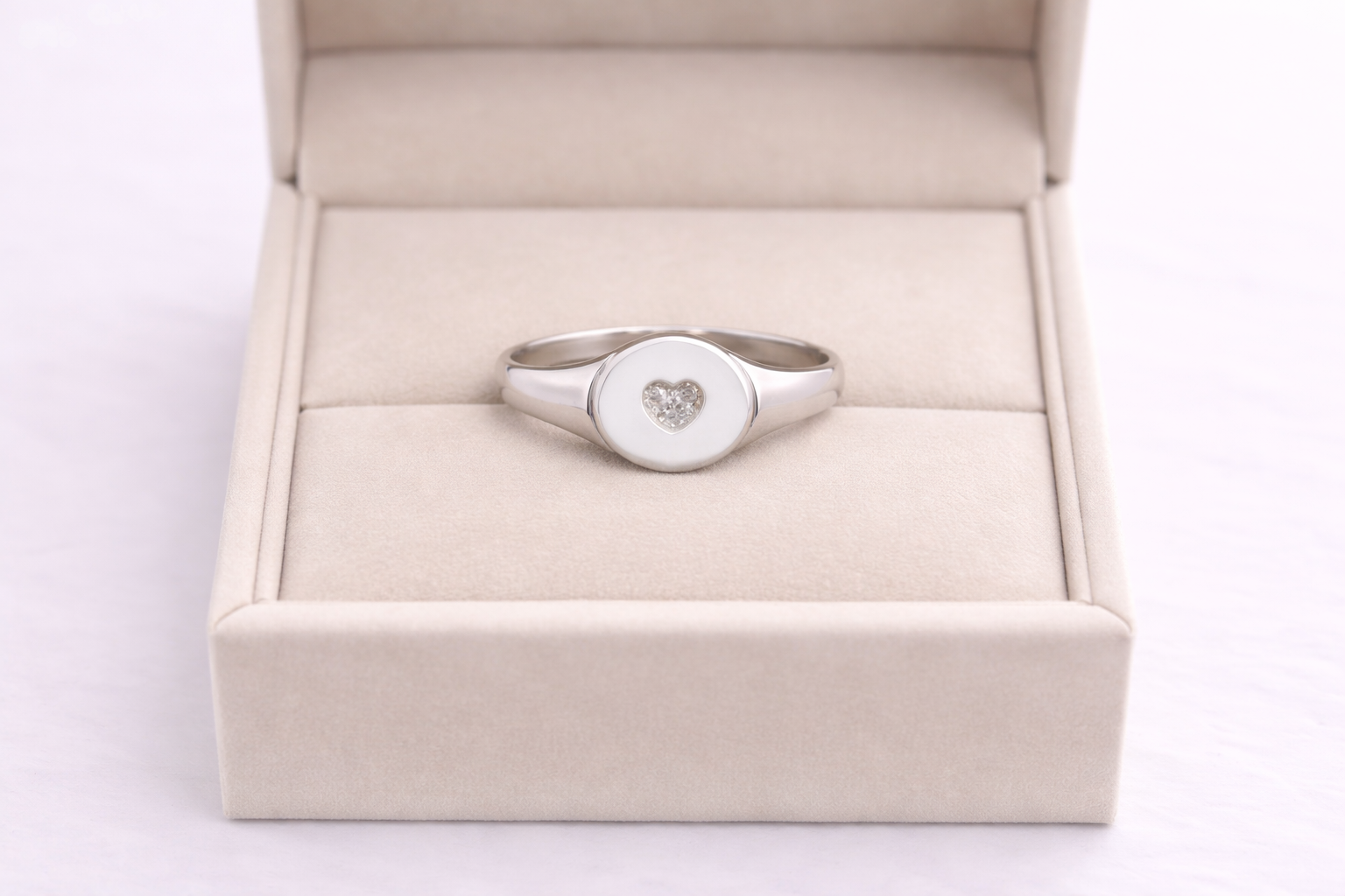 Anel Coração "Placa" Com Zircônia - Prata 925