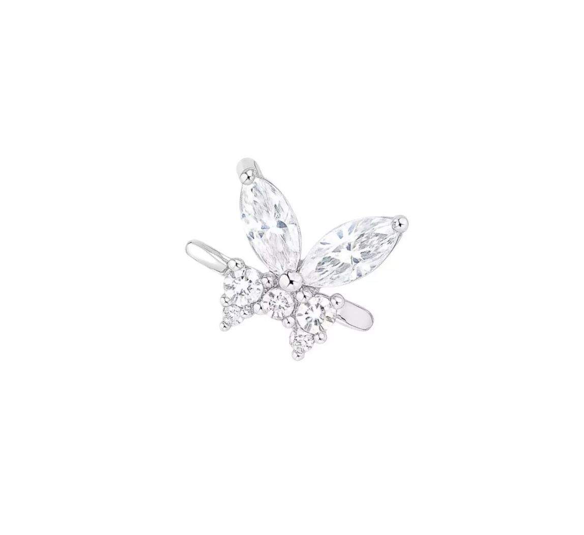 Piercing fake borboleta - Haste em aço cirurgico e detalhe em prata