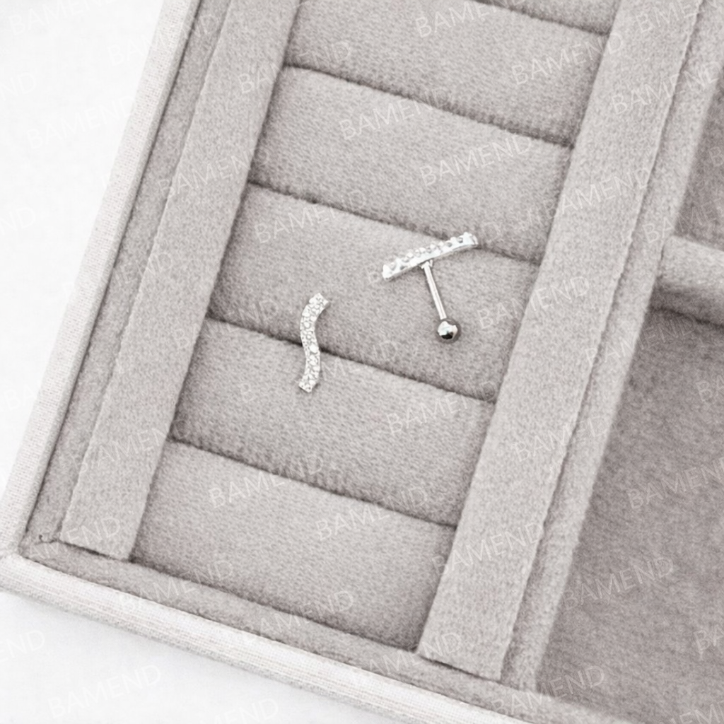 Piercing haste curva cravejada 10mm orelha direita - Haste em aço cirurgico e detalhe em prata