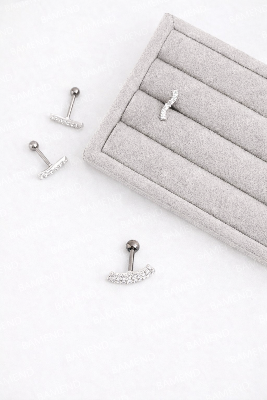 Piercing haste curva cravejada 10mm orelha esquerda - Haste em aço cirurgico e detalhe em prata