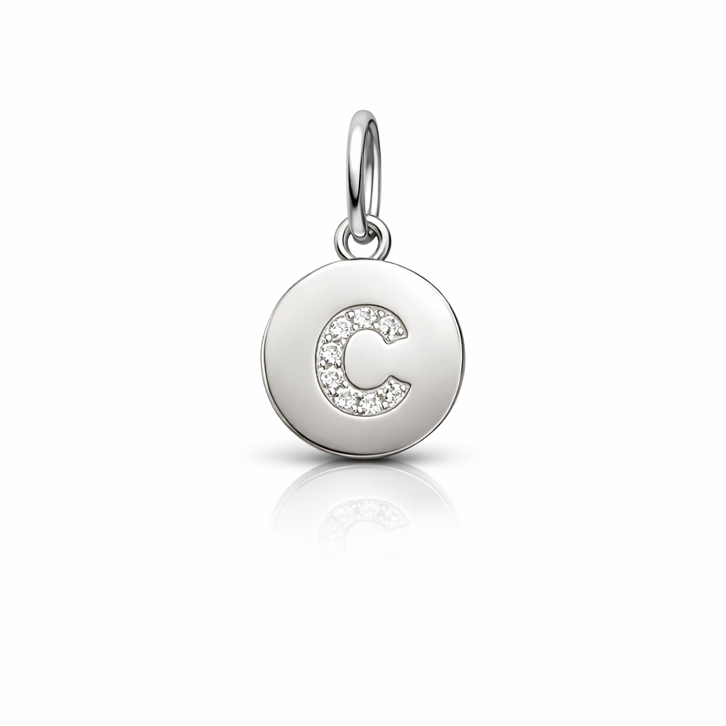 Pingente Letra "C" Plaquinha Cravejado - Prata 925