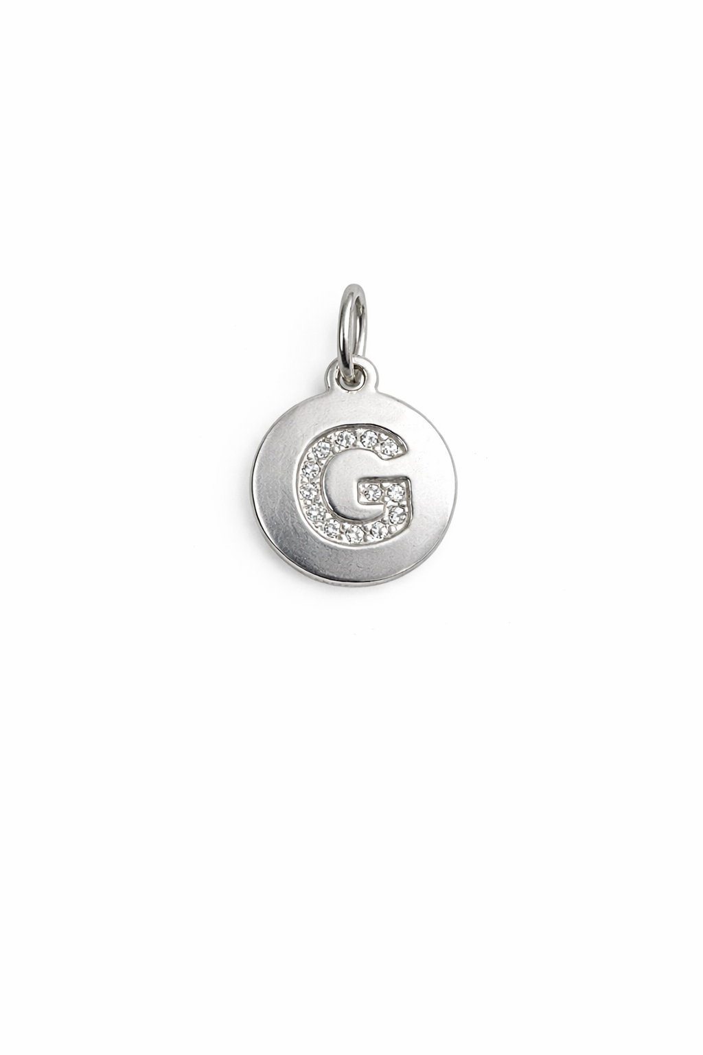Pingente Medalha Letra G Cravejado - Prata 925 e Zircônia
