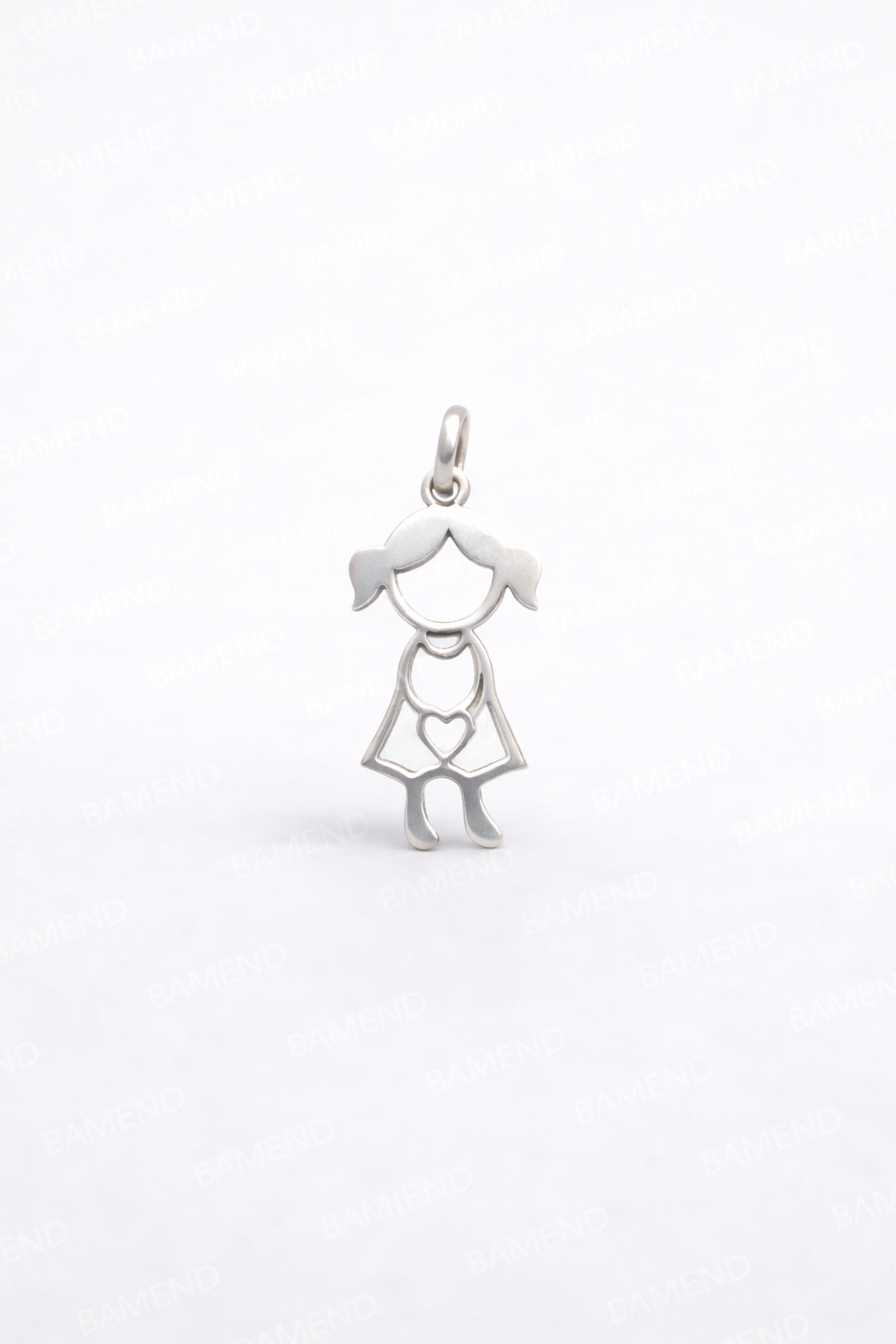 Pingente Menina com Coração Vazado em Prata 925