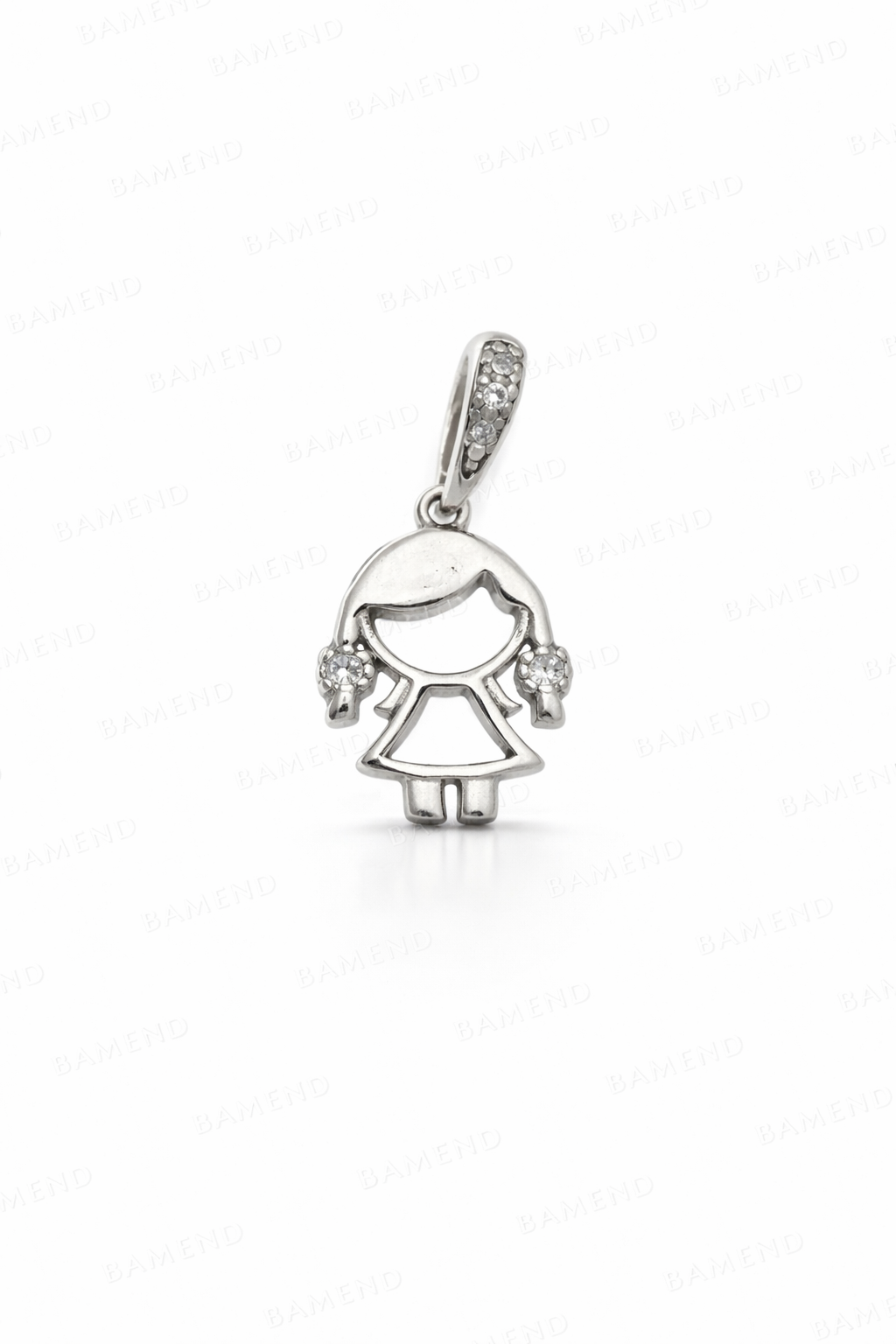 Pingente Menina com Zircônias nas Tranças - Prata 925 e Ródio