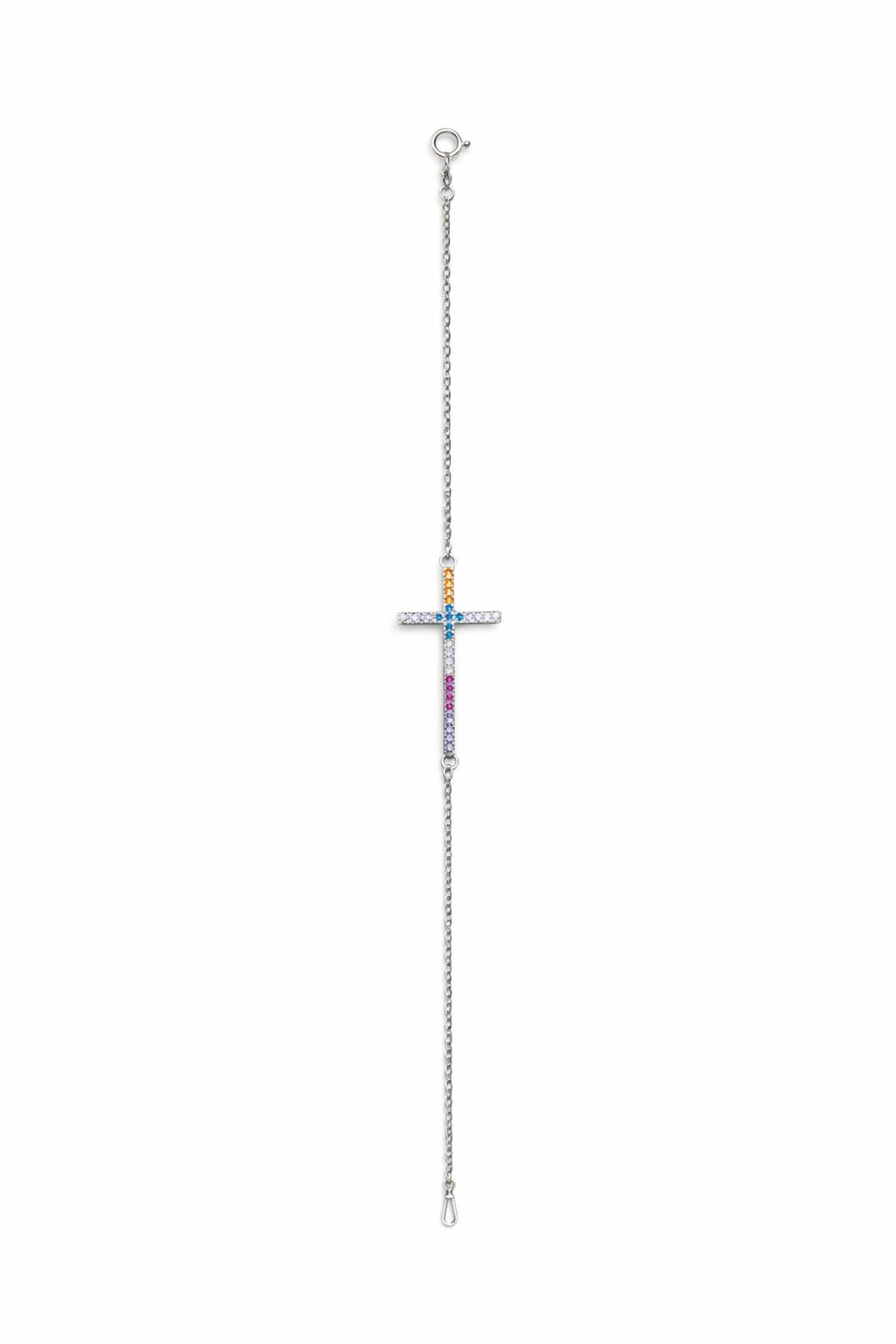 Pulseira Cruz Cravejada Colorida Zircônia Colorida 18cm - Prata 925