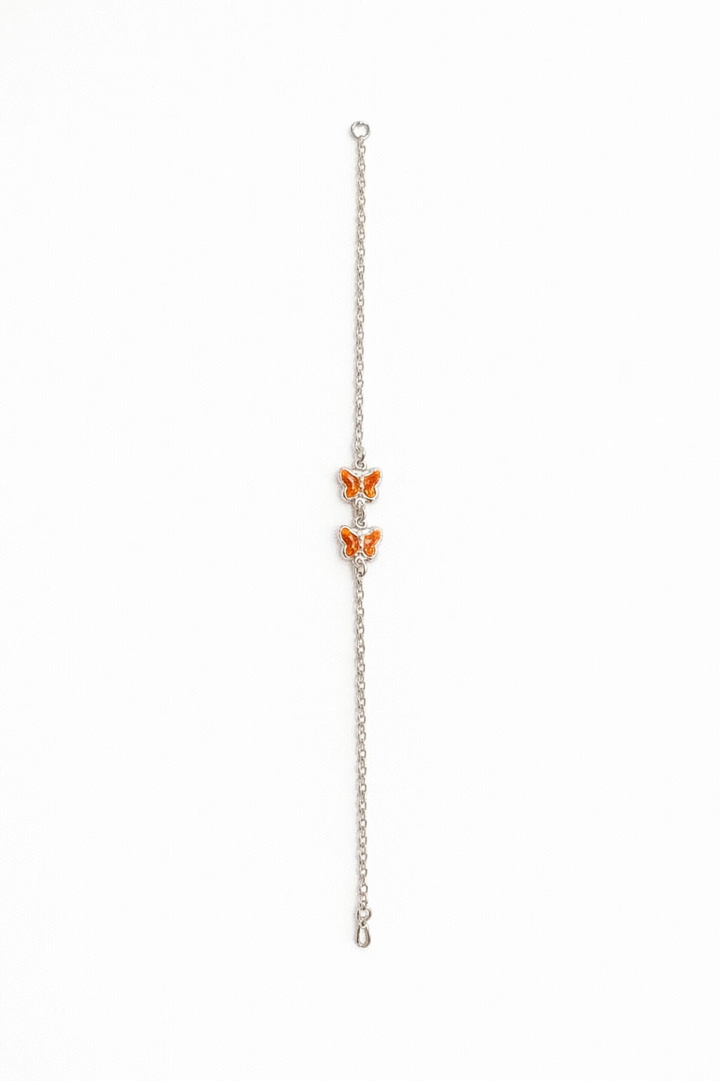 Pulseira Duas Borboletas Laranja Elinho - Prata 925
